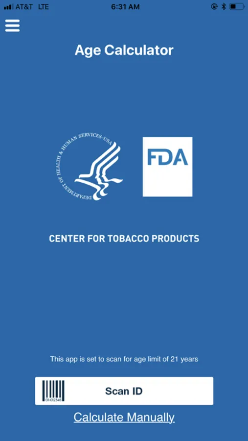 With the “FDA Age Calculator,” retailers can use their personal smartphones to help determine if the purchaser is old enough under federal law to buy tobacco products. Using the camera feature on a smartphone, the app is able to scan the driver’s license of the purchaser to determine if the customer is at least 21 years of age (the federal minimum age to buy a tobacco product). The birthdate listed on the photo id can also be manually entered into the app by the retailer for a quick age calculation. This application is only intended to assist retailers in calculating the age of the purchaser. This application does not check or verify whether an ID is real or authentic. Retailers are responsible for ensuring that they do not sell tobacco products to individuals under 21 years of age. This application does not transmit or share this information or save the information on the user’s device or a third party or government server.