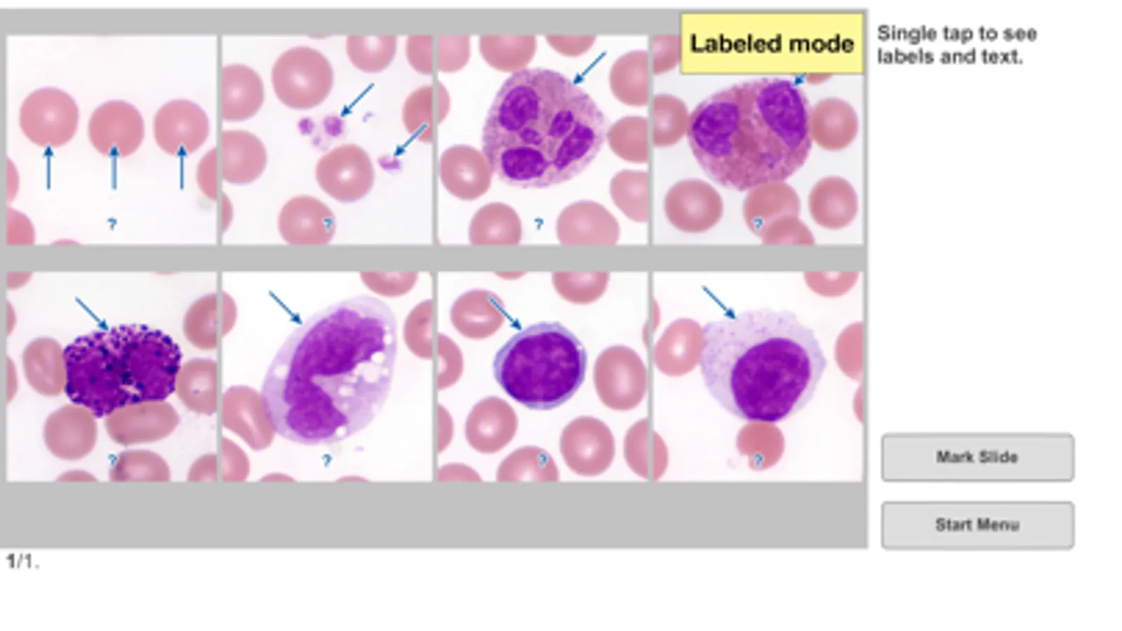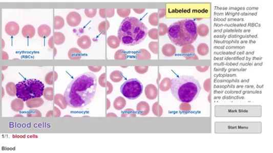 •Slides in any mode may be marked for later review. This happens automatically when you miss a question in the Test mode, and by tapping a button in the Label, Learn, or Quiz modes.
