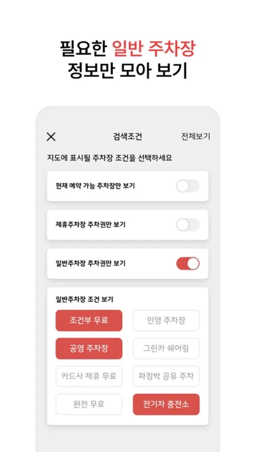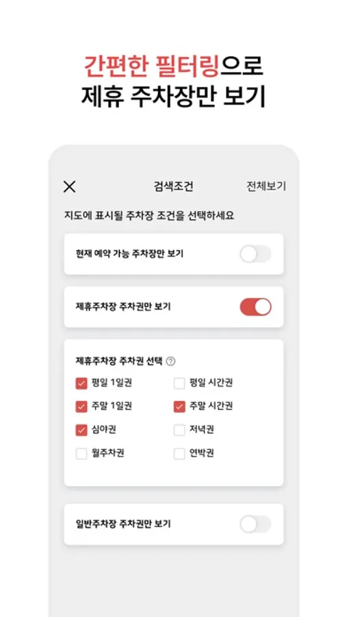 무료로 이용가능한 주차장들을 위치기반 및 상단 조건검색에서 제공~