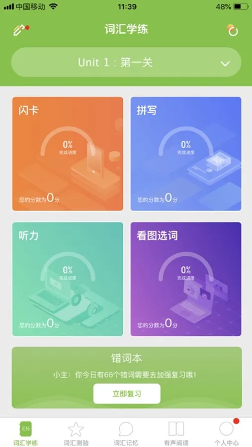 复合学习:听力+匹配+拼写,涵盖单词音、形、义