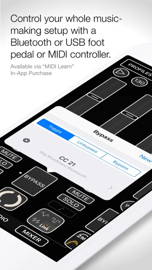 Integrate your music gear with Audiobus: connect a Bluetooth or wired MIDI keyboard to play a synth or other app or Audio Unit. Or, control your whole session from a foot switch or other MIDI controller using Audiobus' MIDI Learn In-App Purchase. And sync with external hardware with Audiobus' best-in-class MIDI clock.