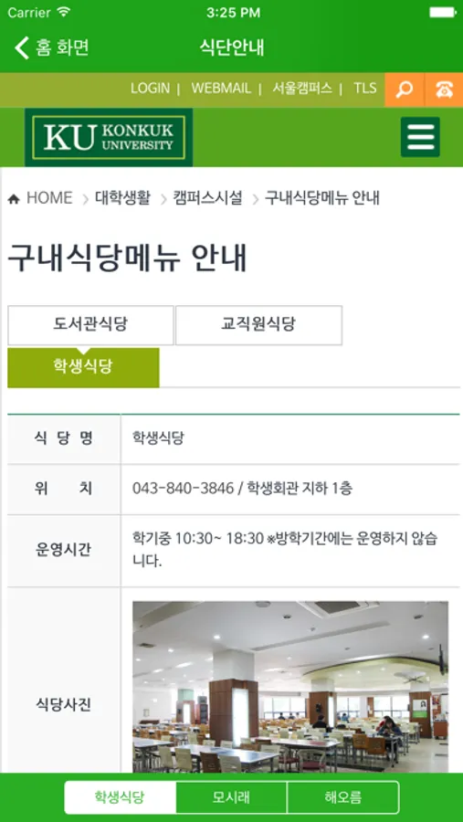 - 식단 안내 (학생식당, 모시래, 해오름)