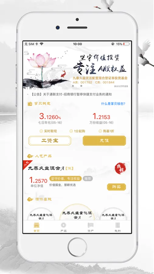 您在出差时、旅行中、家里或者出门在外的任何地点,不用电脑也能随时 进行基金交易,查询持仓明细和损益信息,及时了解九泰基金的最新产品、发售动态、服务提示、理财活动等重要信息。