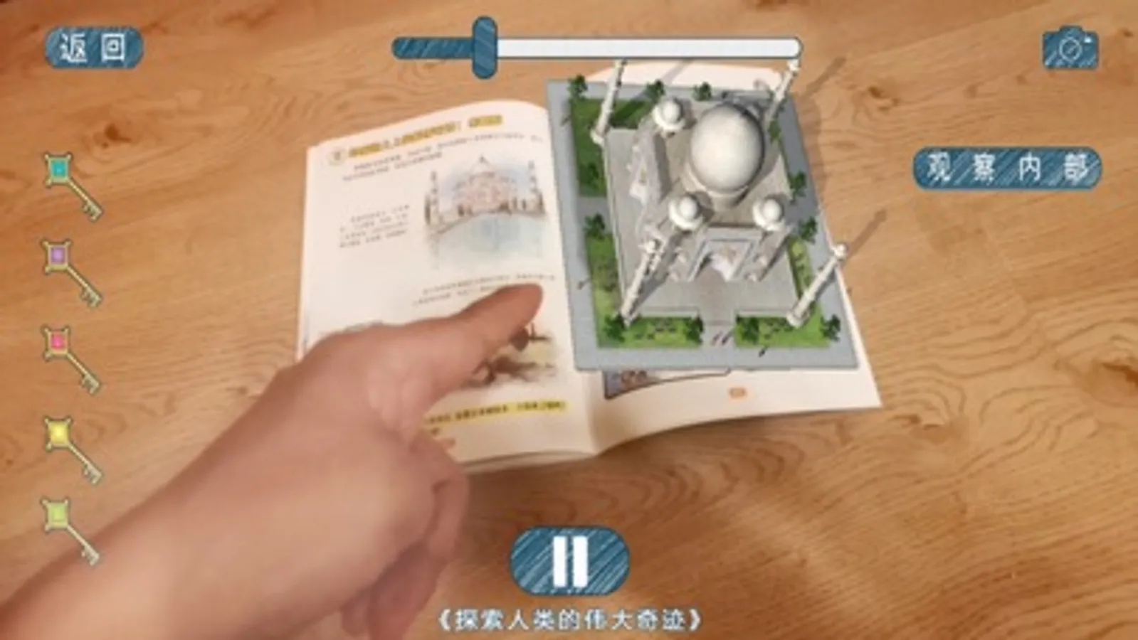 “探索人类的伟大奇迹”是专门为孩子设计的AR4D科普教育软件。本软件搭配《艾布克的立体笔记:探索人类的伟大奇迹》图书使用,将枯燥难懂的书本知识变成生动有趣的立体动画,让孩子从此爱上人类建筑史上的伟大奇迹。