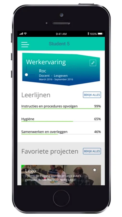 Tijdens het uitvoeren van praktijkopdrachten laat de student zien dat hij beschikt over competenties of kan er gewerkt worden aan andere leerlijnen. De voortgang van deze competenties/leerlijnen wordt door de docent in App4Talent bijgewerkt en is voor de student op ieder moment zichtbaar. De docent geeft de vordering van de competentie/leerlijn aan tijdens het beoordelen van de opdrachten. Zo is de student in staat om zijn leerproces te sturen naar de leergebieden die extra aandacht nodig hebben. Lesmateriaal kan specifiek per student aangeboden worden waardoor leertrajecten op maat gegeven kunnen worden.