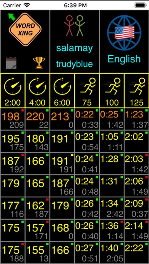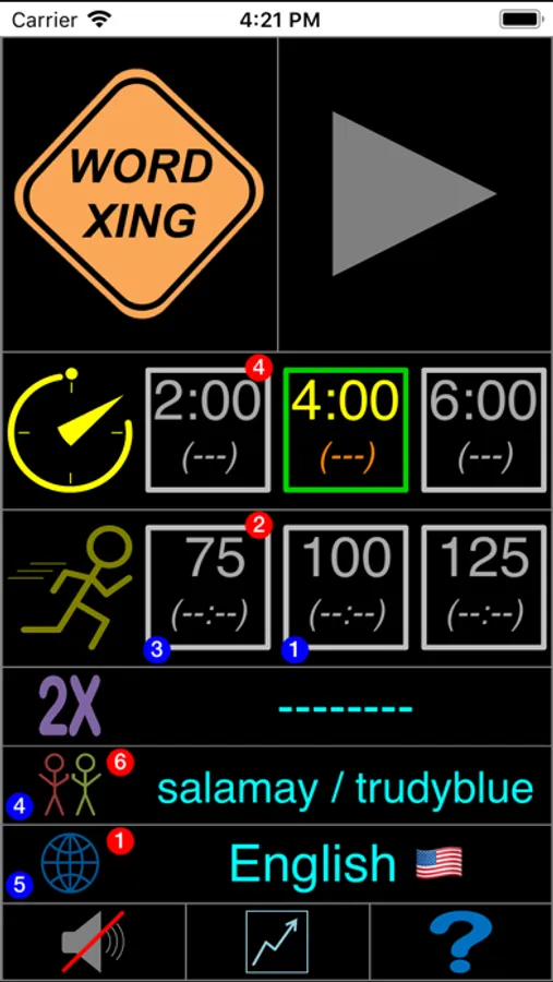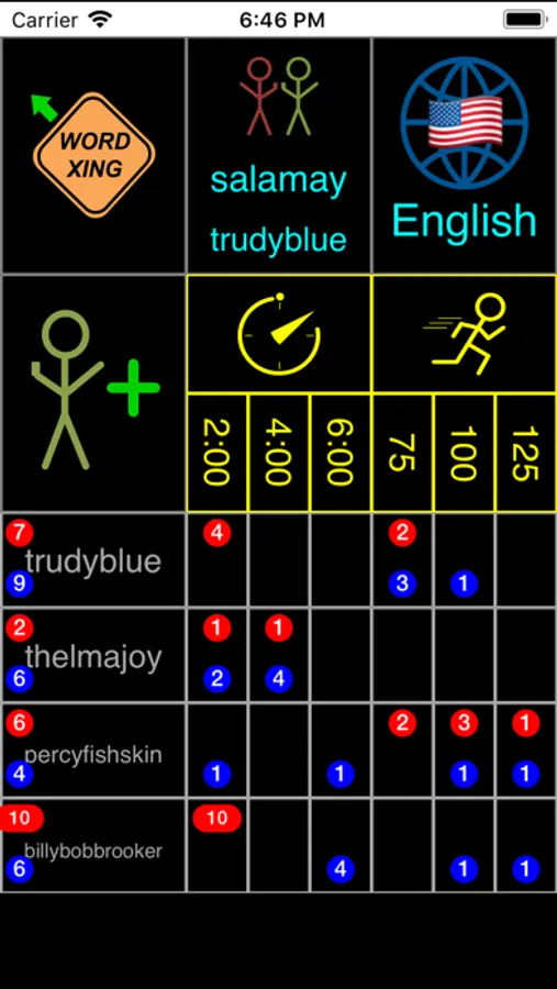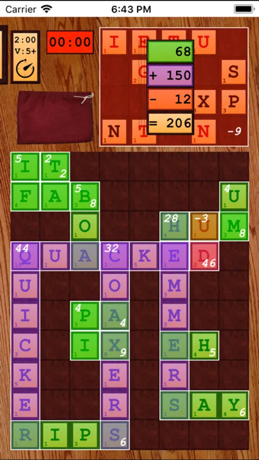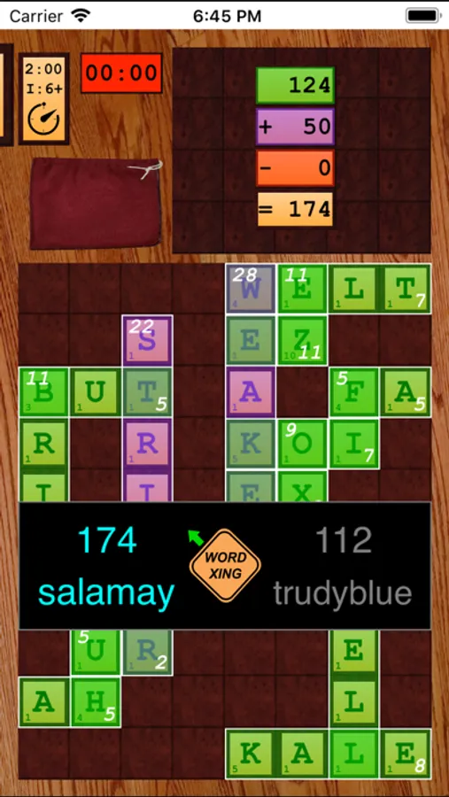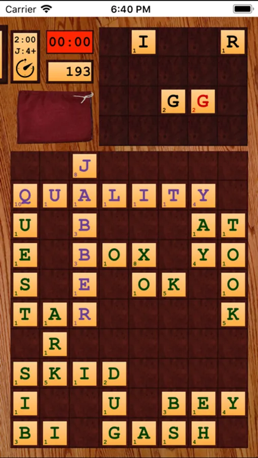 • Double points are awarded for long words and words containing the special, “2X” letter chosen randomly at the start of the game.
