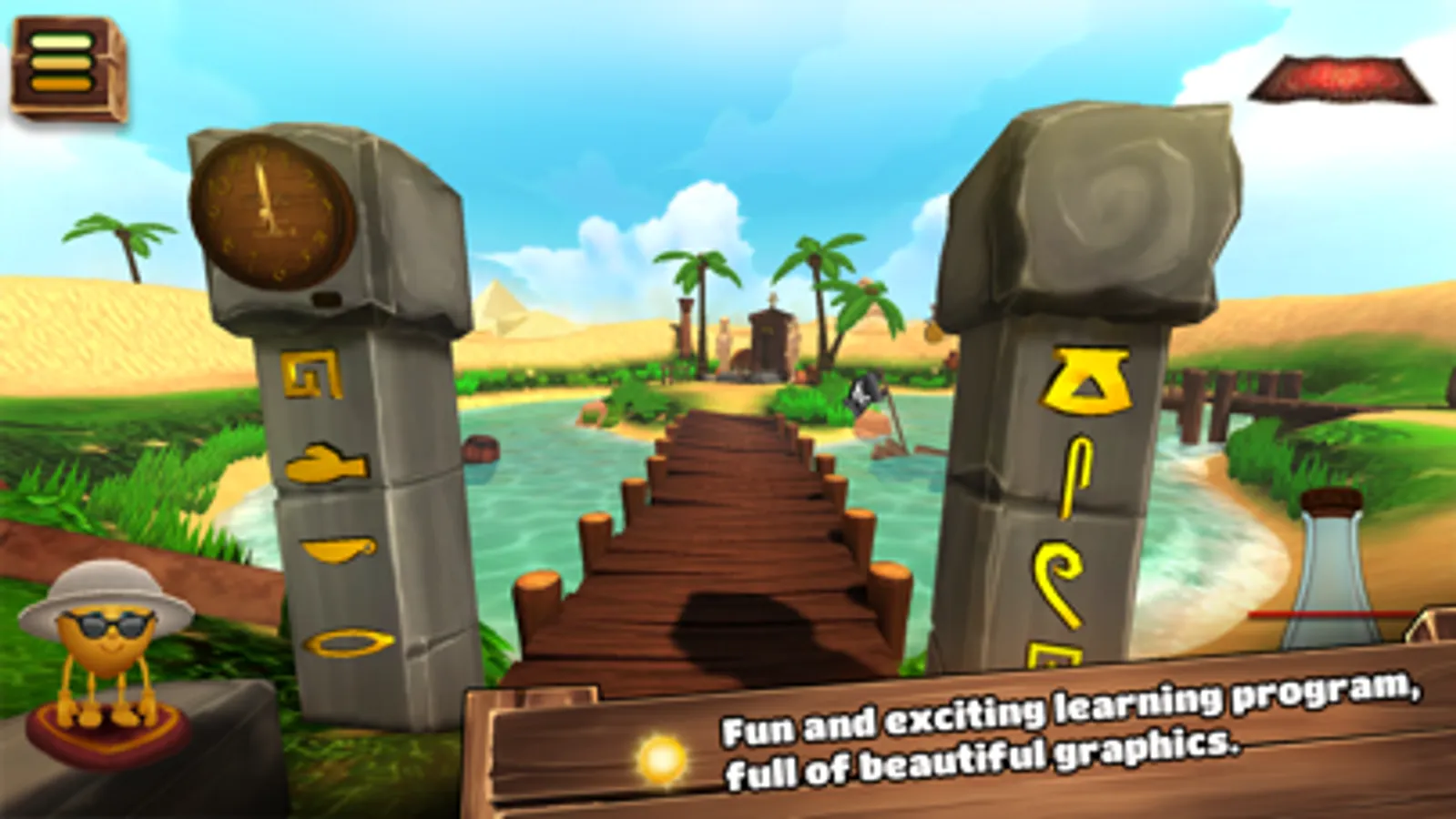 In The Flying Carpet you travel around Egypt in search of your friend. With the carpet you will fly between the Nile, Cairo, the Desert, the Oasis, the Pyramids and the Sphinx. You will encounter different themes in mathematics. During your trip you face a variety of mixed math problems, games and cleverness.
