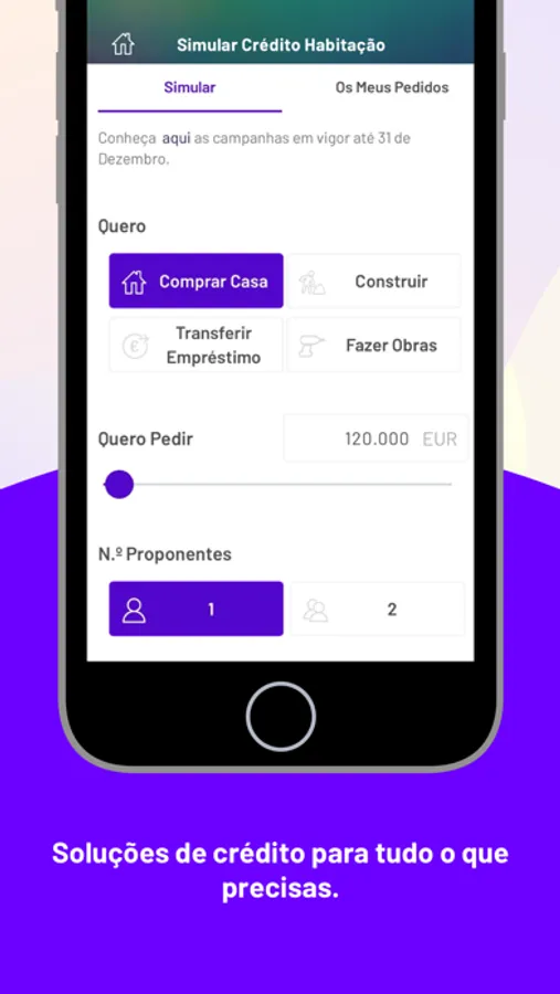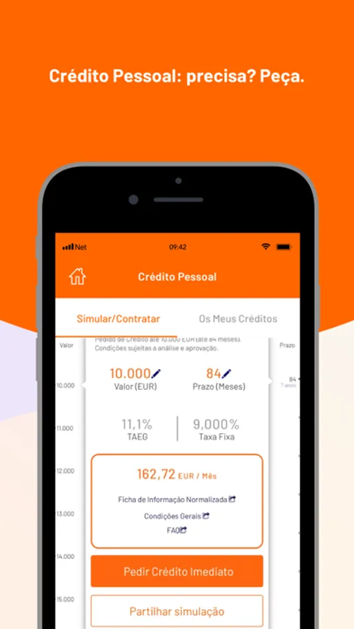 • Simulação e pedido de Crédito Pessoal, com dinheiro imediato na conta