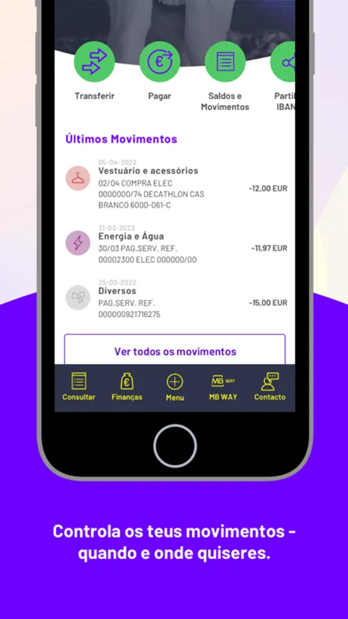 • Veja as suas contas de outros bancos e faça transferências dessas contas através da BPI App