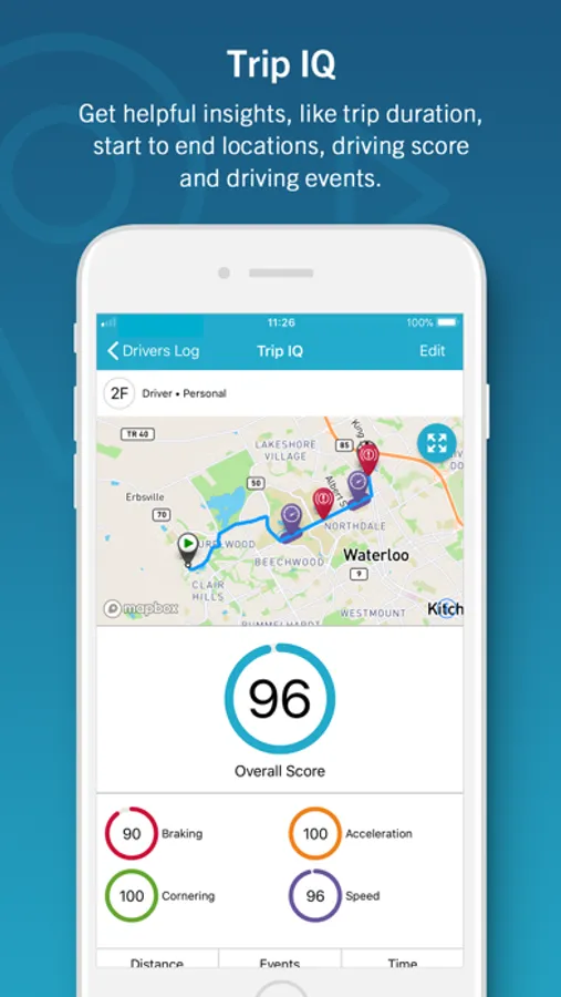 Become an all-around safer driver with helpful insights, like trip duration, start-end locations, driving score and driving events (acceleration, braking, cornering, speed versus posted speed limit) that are time stamped and graded.