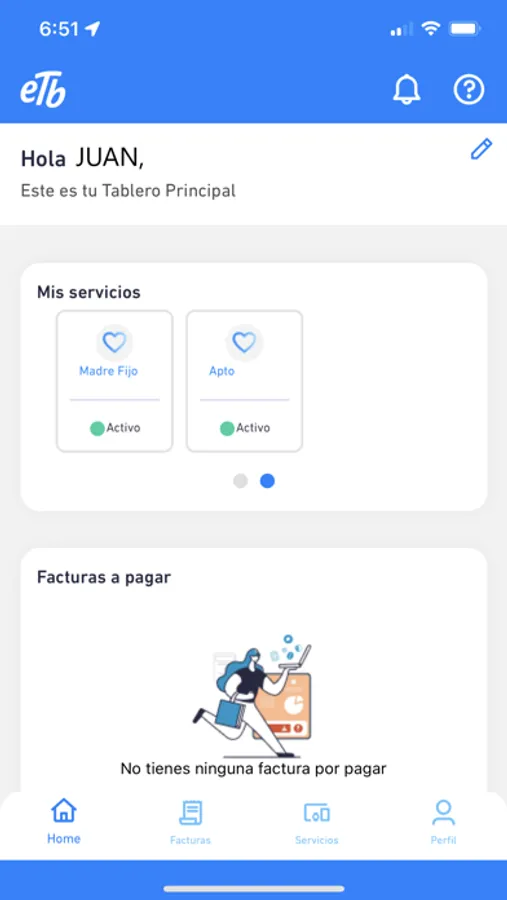 ¡Llegó tu nueva MI ETB! Descárgala y disfruta de todo lo que trae para ti: consulta tus servicios y productos, gestiona tus equipos y redes WiFi, paga tus facturas e inscríbete a pagos programados, consulta y realiza tus trámites y solicitudes, y mucho más, todo desde un solo lugar,.