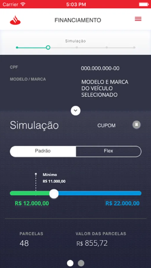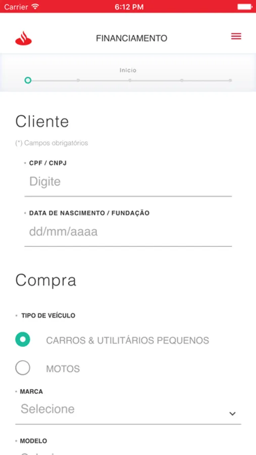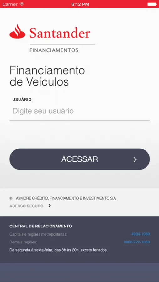 Esta aplicação é um canal de simulação, preenchimento e aprovação da proposta, mediante login (email). Neste momento, esta versão do aplicativo destina-se apenas aos funcionários do Grupo Santander Brasil e Lojistas para venda de Financiamento Automotivo, de Bens e Serviços.