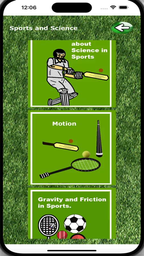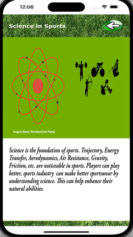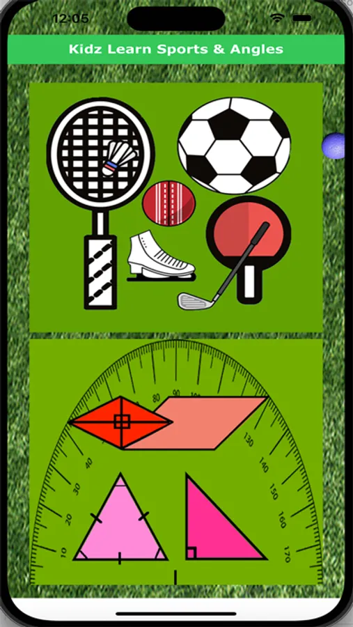 "Kidz Learn Sports with Angles" is an educational app that shows a sports image and narrates the sport and the science concepts in sports. This app explains details about the sports country of origin, the number of players and the play . This app also uses sports and its boundaries as an example, and educates various types of angles in math. The app describes an angle taking few popular sports. This app explains the science in sports. How science concepts such as Gravity, Friction, Air and Fluid resistance, Impulse, and Energy impact sports. Players understand science in sports to play better.