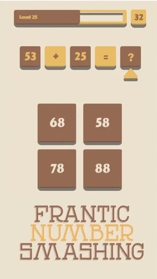 Your Arithmetic skills, Reflexes and Quick Thinking will be put to test in this intense game. Prepare yourself for an exhilarating experience, bash your way through the numbers and keep leveling up. Keep an eye on the timer as time doesn't wait for anybody in this crazy game. Compete with your friends in the online leaderboards.