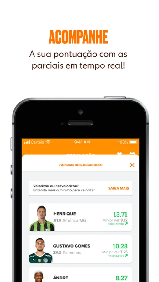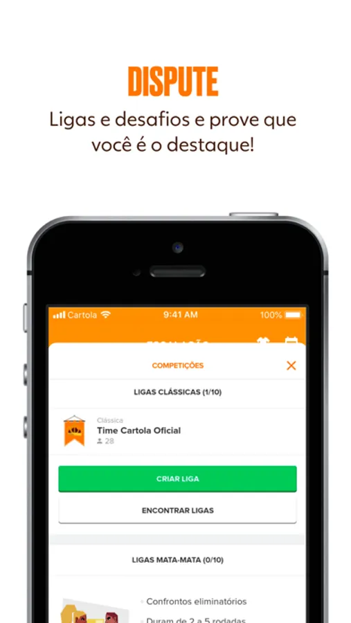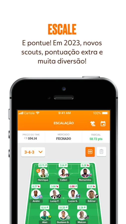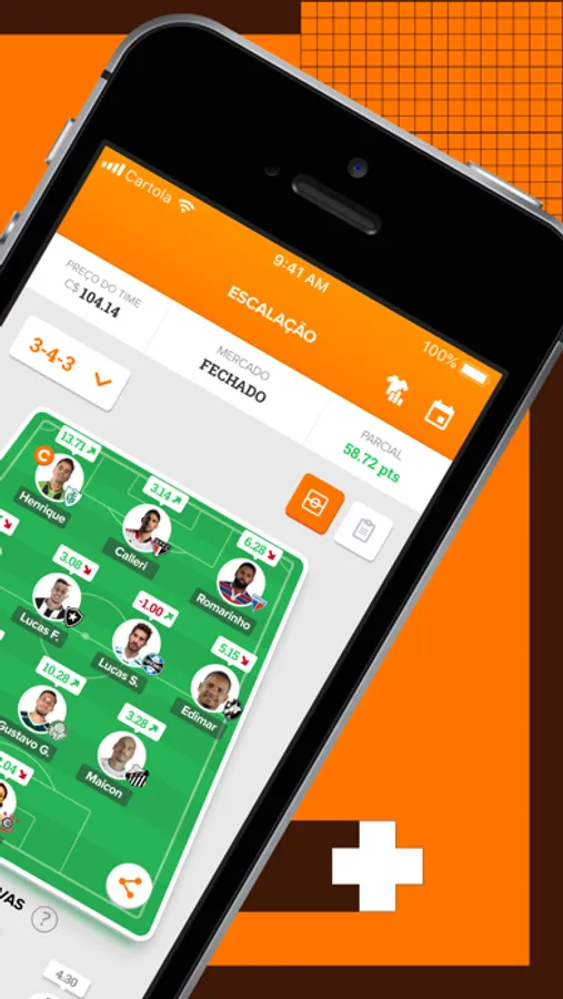 Só no aplicativo oficial do Cartola, você encontra escalação, banco de reservas, mercado, parciais do seu time, parciais dos amigos que você segue, níveis mensais, Ligas Clássicas, Mata-matas, Desafios, comparação de clubes, notificações, notícias, dicas e muito mais!