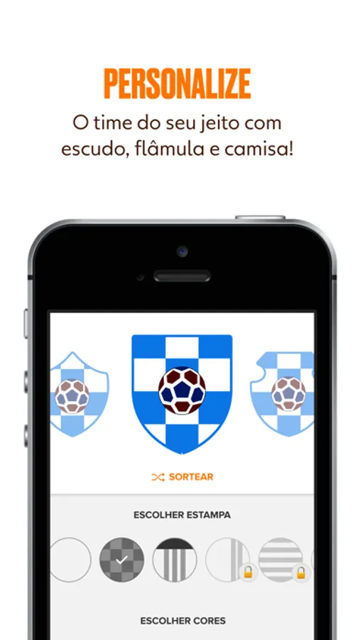 • Crie seu próprio time com nome, escudo e uniforme
