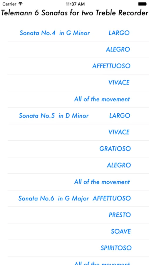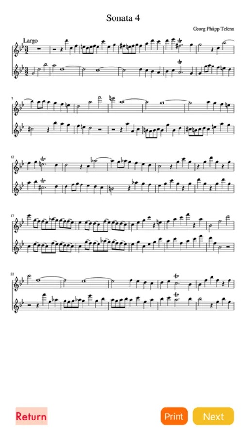 This App contain 4-6 of the Telemann 6 Sonatas for two Treble Recorder and Duet in B flat major.Since it is independent of each part, by playing the other part, you can practice together.Pitch is 440 Hertz.