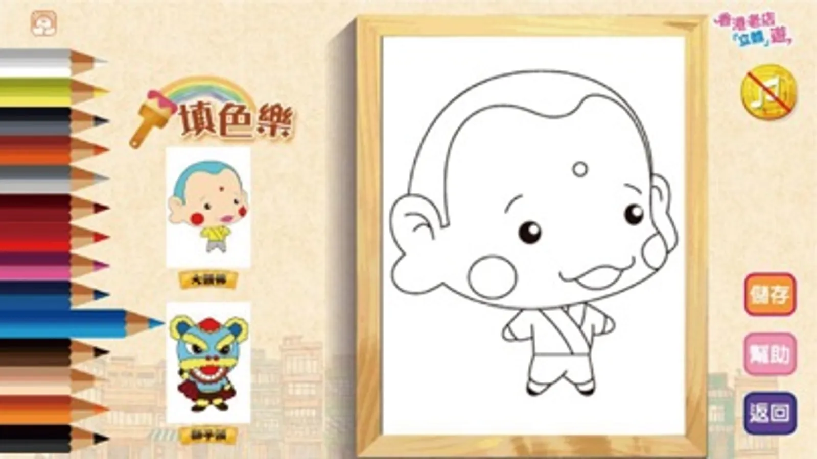 * 填色樂: 為大頭佛和獅子頭填色,還能把你的作品儲存下來。
