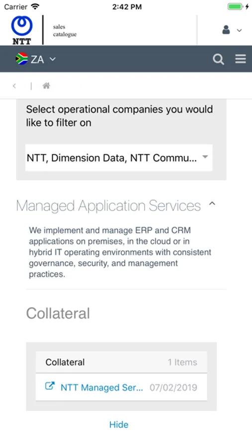 NTT Sales Catalogue Screenshots
