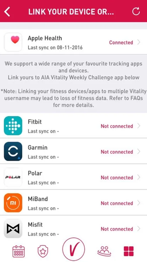 • Be given a weekly Vitality Points challenge that you can achieve by linking your favourite fitness device or app (e.g. Apple Health) to track your walking or exercise activity. A wide range of the most popular apps and devices are supported.