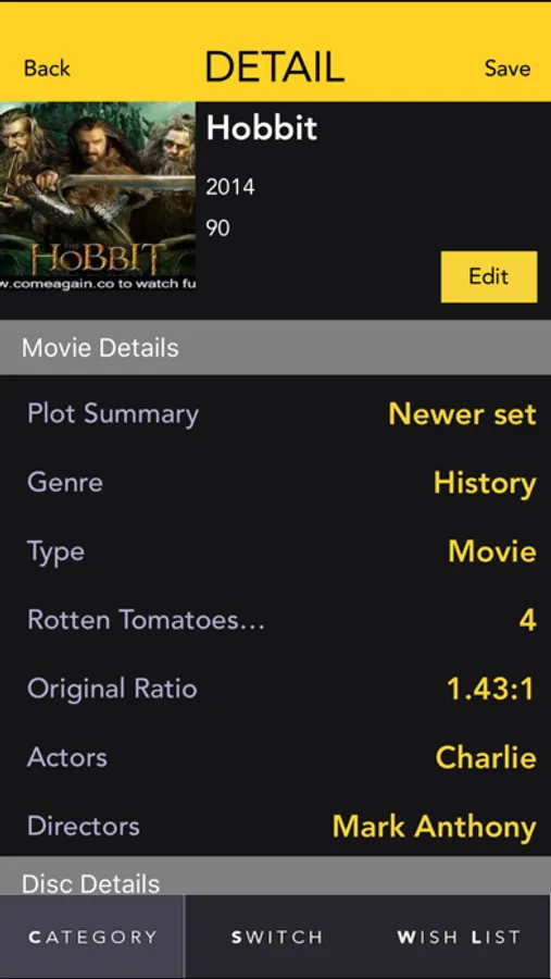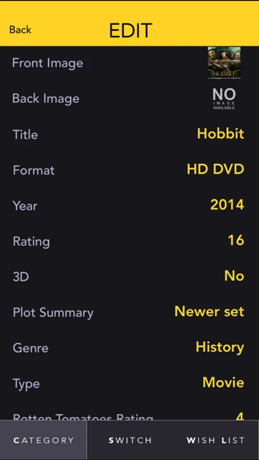 - Add your person details to a movie: Purchase Price, Storage Location, etc.