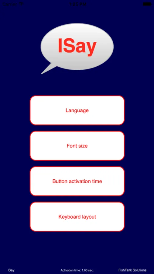ISay is a simple application to support people who have difficulty speaking and who's fingers can not control a regular keyboard (size) anymore.