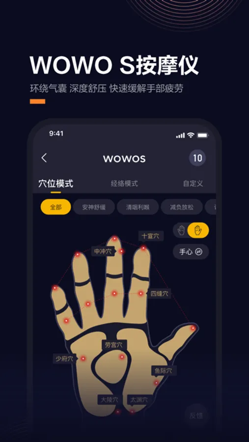 1.APP easy remote control, deep massage, point to point stimulation of hand acupuncture points, Wen Tong meridians, calm mind. Among them, APP can control Breo products iDream 5, iNeck 3, WOWO3 products.