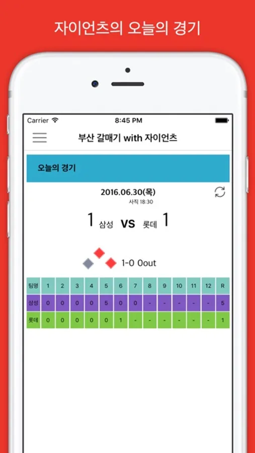 1. 자이언츠의 오늘의 경기