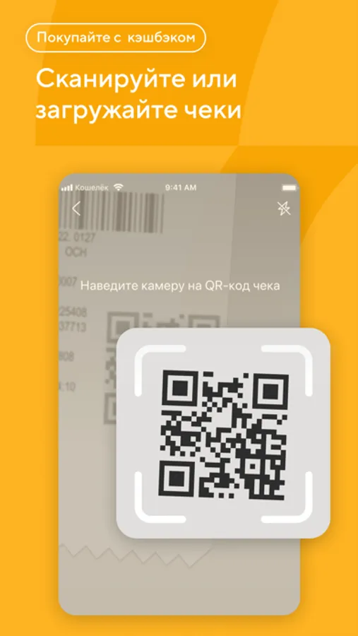 Возвращайте деньги даже за покупки, которые оплатили наличными. Сканируйте бумажные чеки или загружайте электронные, а мы зачислим рубли на ваш счёт в Кошельке. А оттуда их можно выводить на банковскую карту.
