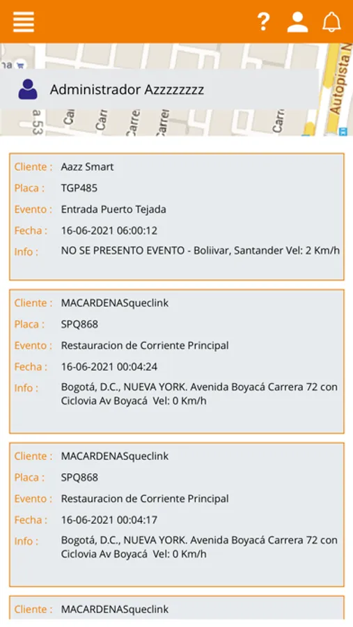 Con la herramienta de administración de flotas podrá conocer en tiempo real los movimientos realizados, los servicios prestados y las alarmas provenientes de su operación.