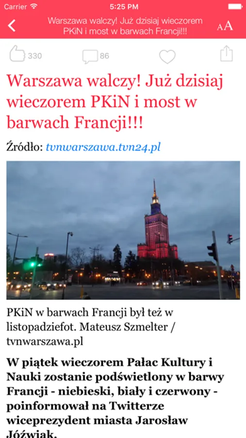 Wybrane artykuły można dodawać do listy "ulubionych", gdy chcemy do nich wrócić później. Gdy chcesz podzielić się artykułem ze znajomymi - istnieje przycisk "udostępnij"