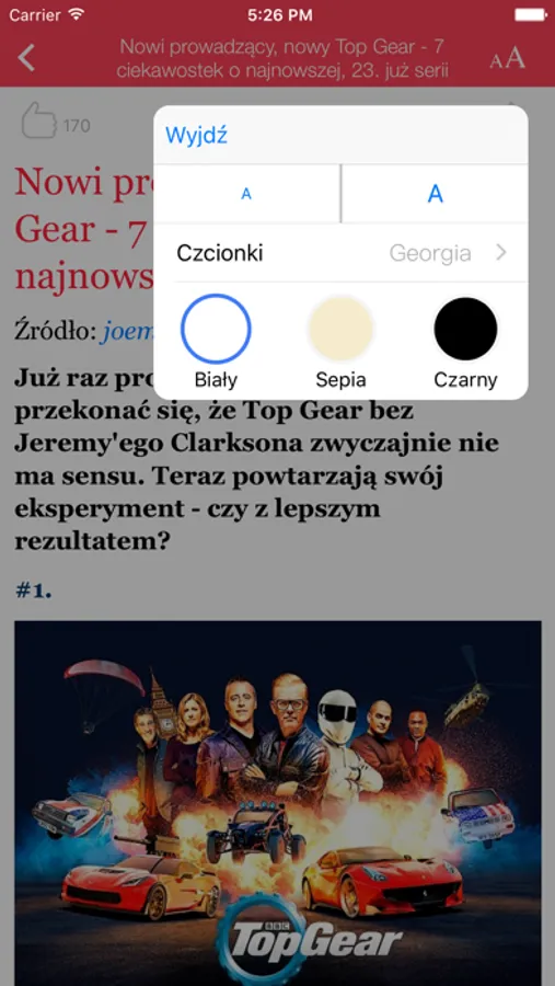 Jeśli serwis internetowy daje taką możliwość, to aplikacja wyświetla komentarze dla danego artykułu.