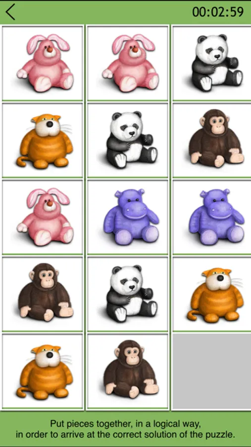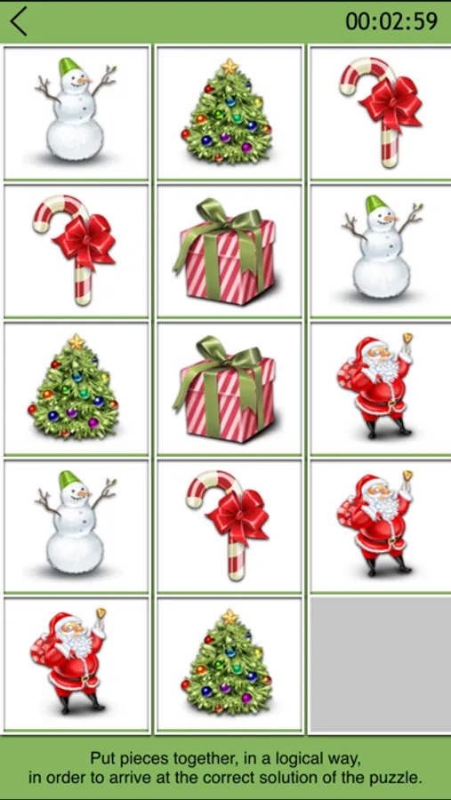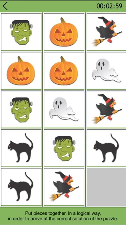 The task for this puzzle is to arrange it so that no tile design is repeated in any row column or diagonal.