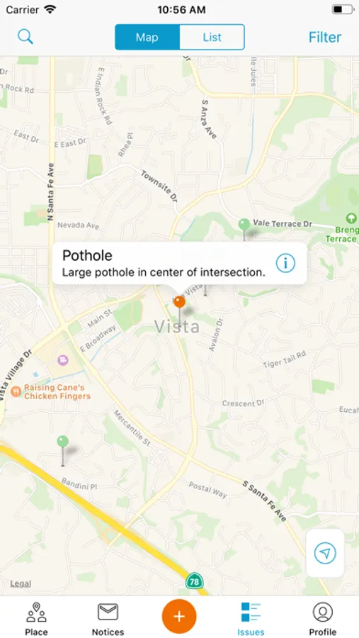 For those potholes, damaged street signs, street light issues, graffiti reporting, and other local problems needing attention, the City of Vista’s “Access Vista” app provides a convenient way to notify the City of Vista to such issues, while providing location information that helps the City of Vista staff respond. The Access Vista app also provides quick access to key City of Vista information and services. It is not designed to provide access to all City of Vista services at this stage, but will be expanded over time.