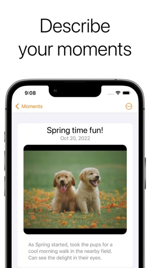 Capture important moments shared with your pet. You can also add pictures and tag your pets. Moments can be viewed on a timeline for easy recollection.