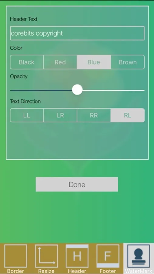 ●User can garnish PDF with watermark, header, footer text with different colours and opacity.