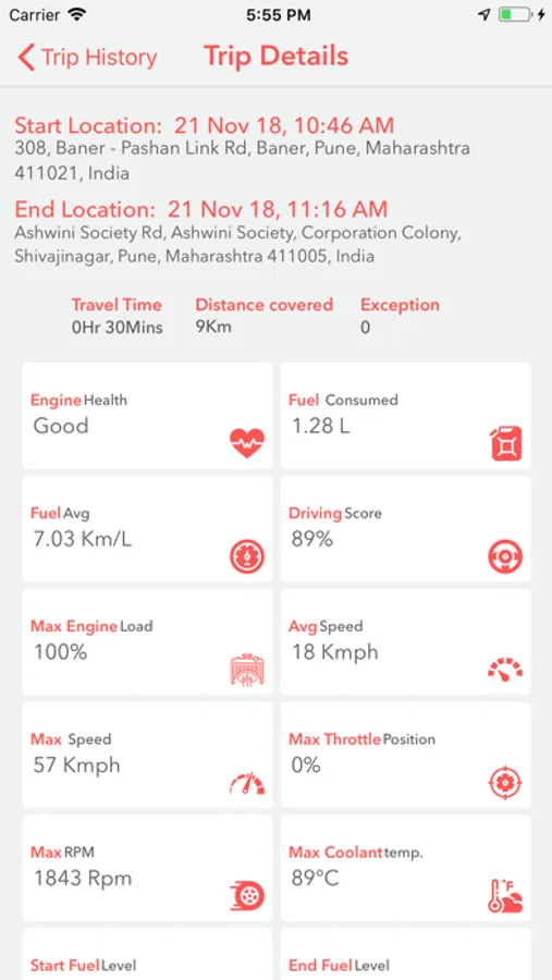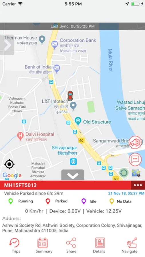 • Click on the vehicle’s icon on the map to get updated information of its location and status.