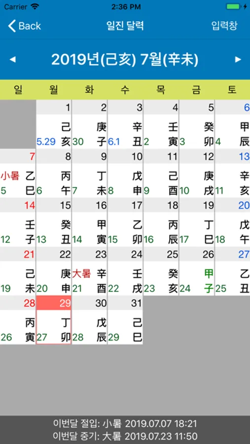 10) 일진보기 기능(음양력, 절기, 절입일 등)
