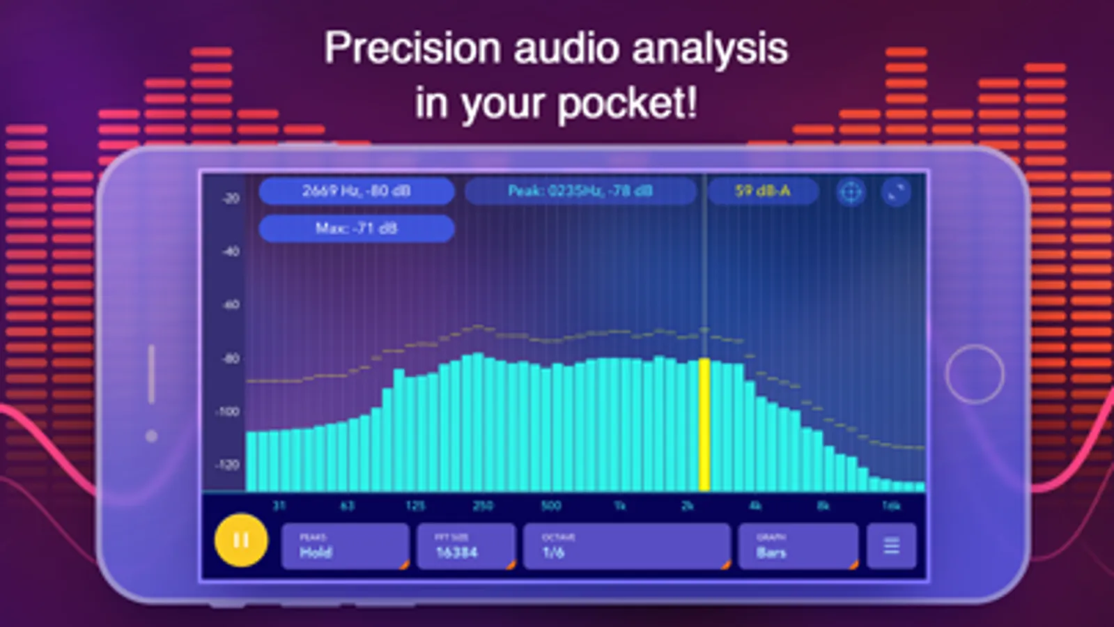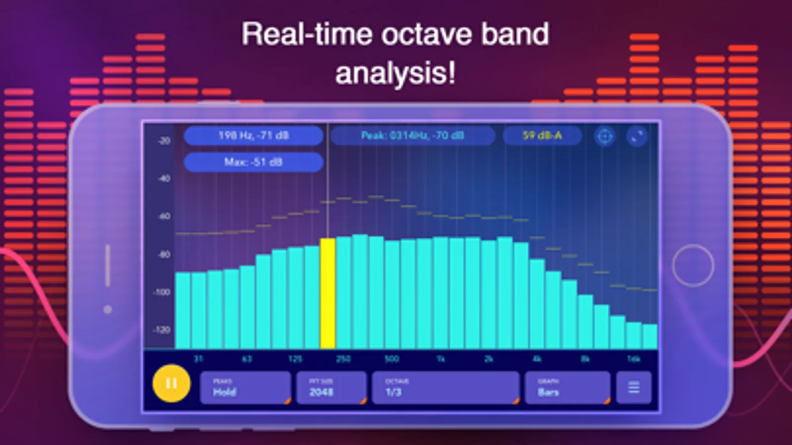 Octave Band Real Time Analyzer is a powerful real-time audio analysis app. Ideal for room tuning or speaker tuning, this app provides precision audio measurement and visualization that fits in your pocket!