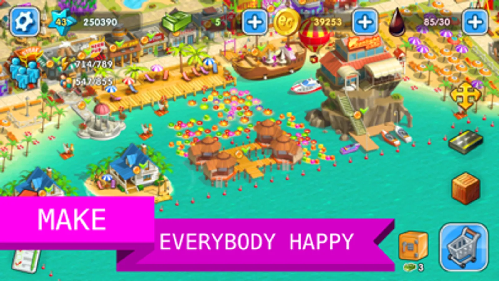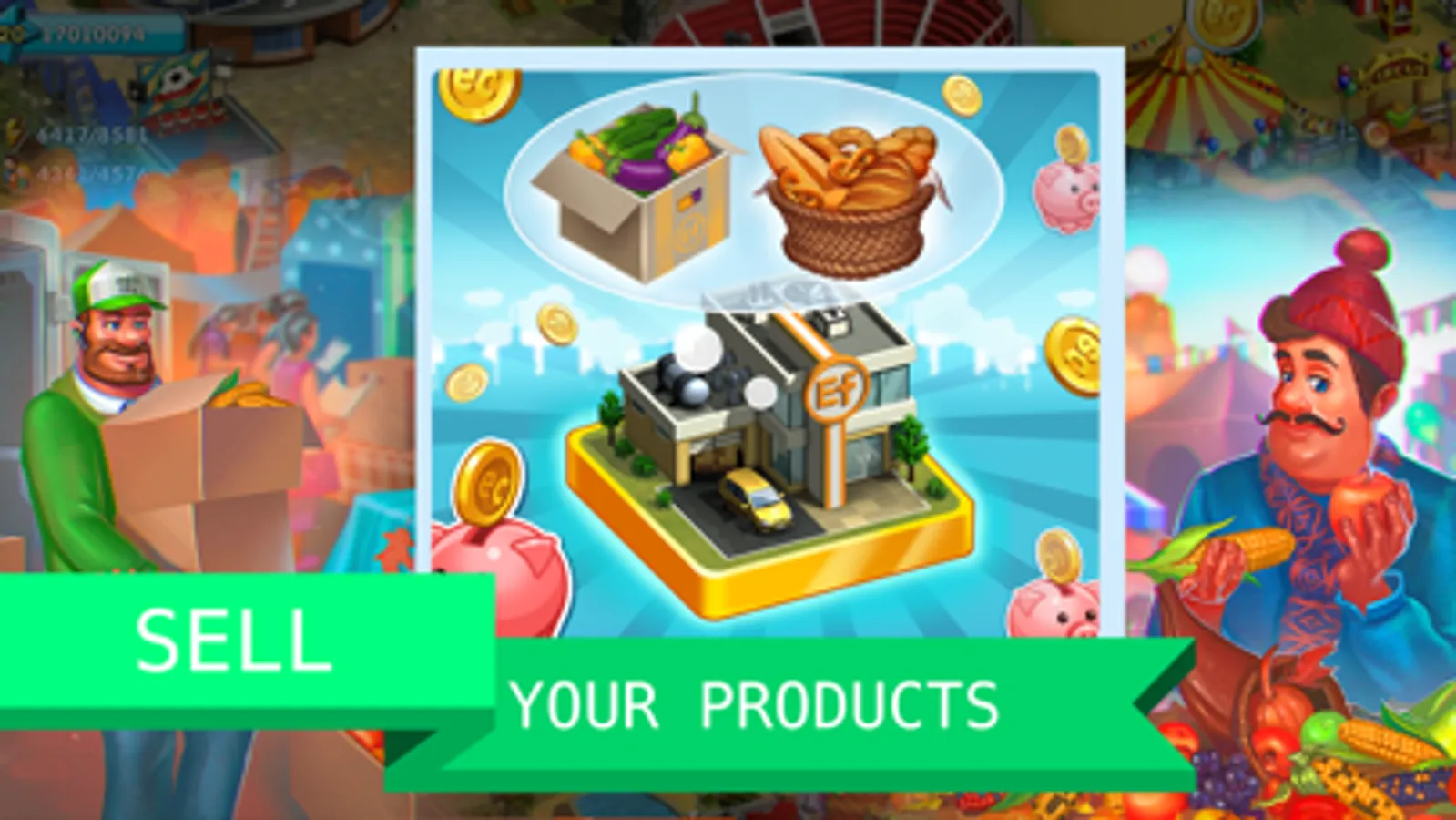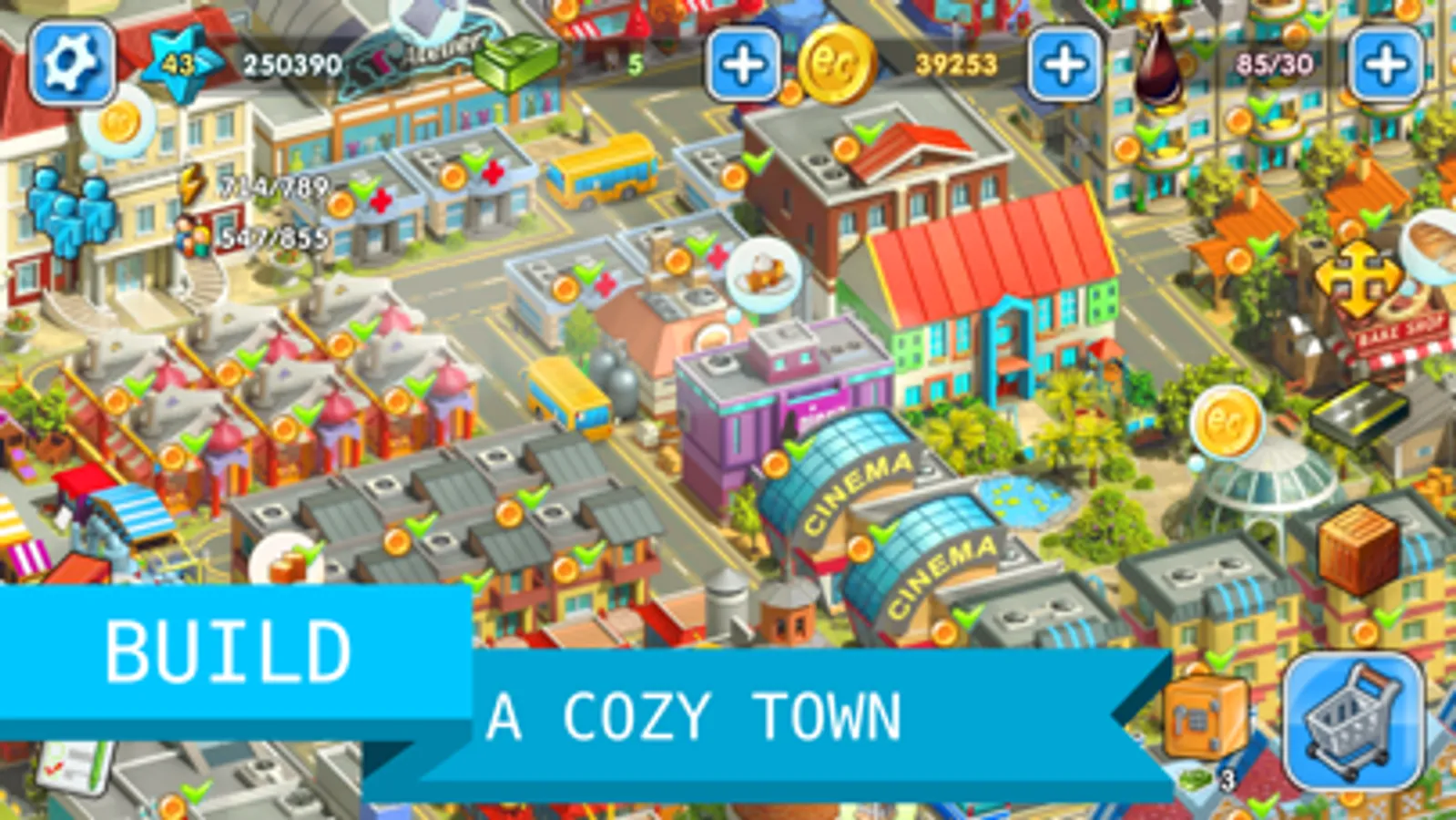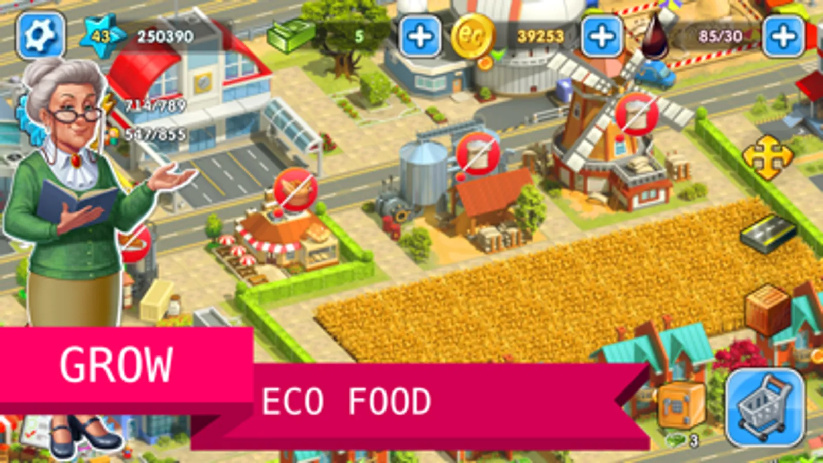 Build houses, roads, shops, factories, municipal buildings, grow fruit and vegetables on a farm, send orders by car, ship or train, decorate your city.