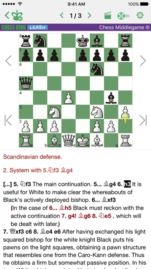 Chess Middlegame III course composed by GM Alexander Kalinin is aimed at teaching a student much of the middlegame methods and intricacies through a theoretical section. Openings: Sicilian defense (Closed System and 3. Bb5 var.), Scandinavian defense, Grünfeld defense, Queen's Gambit Accepted, Reti opening and others.