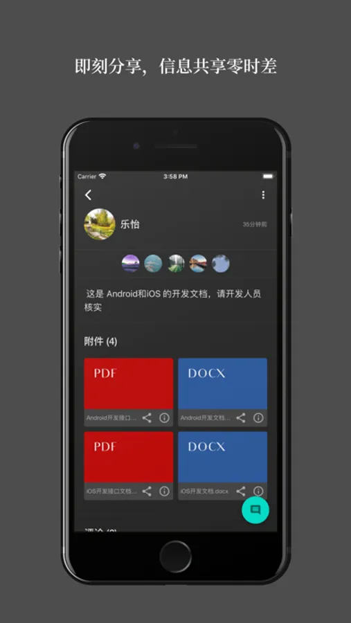【文件共享】当你想要把下属刚刚提交上来的报表,跟领导做工作汇报时,转发此报表到工作汇报协作,高效快捷。当你想把工作文件发送给同事,做内容分享或工作配合,第一时间转发到相关的工作协作,共享无时差。