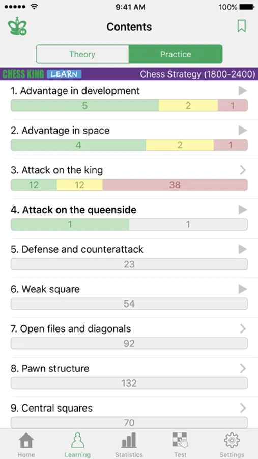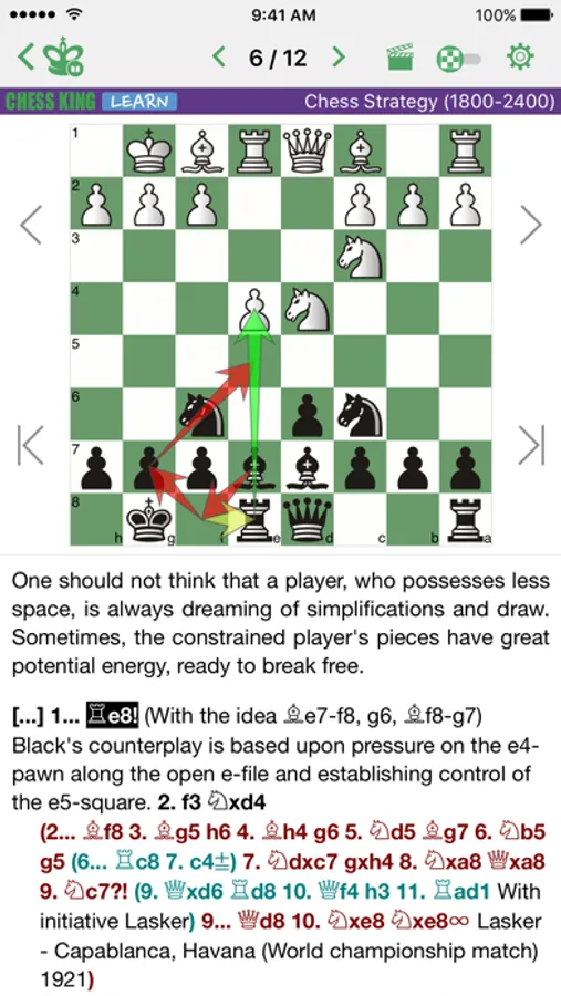 This chess program presents many instructive positions with 18 most important strategic themes such as Advantage in development, Advantage in space, Attack on the king, Attack on the queenside, Weak squares, Pawn structure, Open files and diagonals and others.