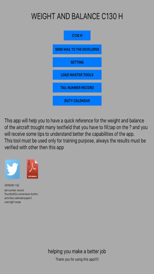 this app is the LITE version, will help you tu computing the weight and balance of the aircraft;