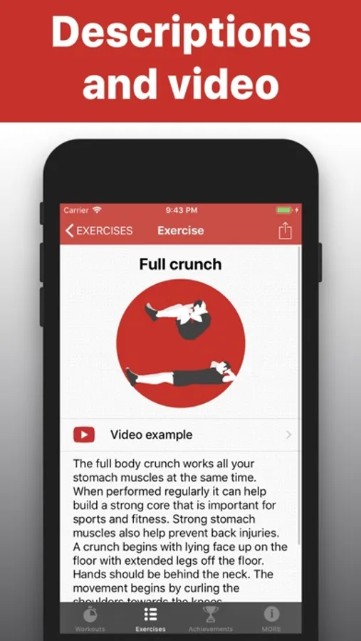 Each exercise has a detailed description and video instructions