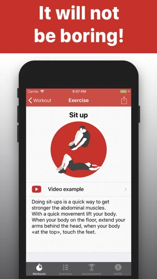 Training of this application will give you relief abdominal muscles, as well as excellent physical form, shape and strength for a long time.