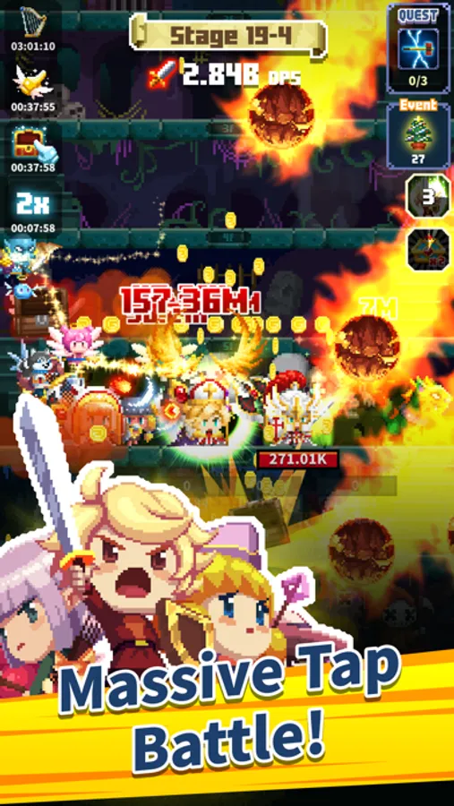The massive team fight between the mighty William and countless heroes is right here! Be fascinated by the powerful saga of killing countless monsters with continuous TAP. Neither the ever-increasing pack of monsters nor any powerful Demon can stand up in front of the massive team fight!