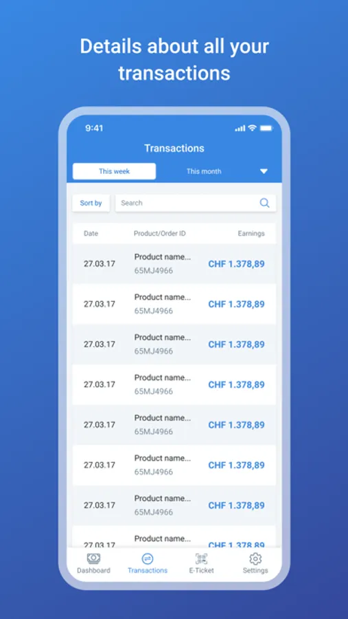 Access all the transaction details on the smartphone that interest you. You can filter by order ID, product ID, product name, customer email, first and last name, payment method or currency. This way, you remain capable of action in every situation.