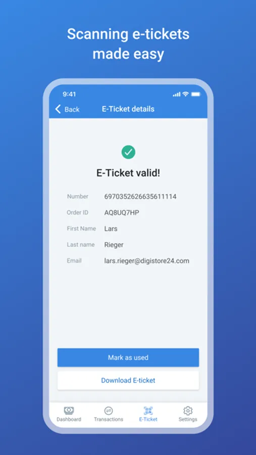 For those hosting an event, the ticket scan is now even easier. You or one of your staff members with support-access easily scan all e-tickets directly with the app. This way you keep track of your event and lose no more time.