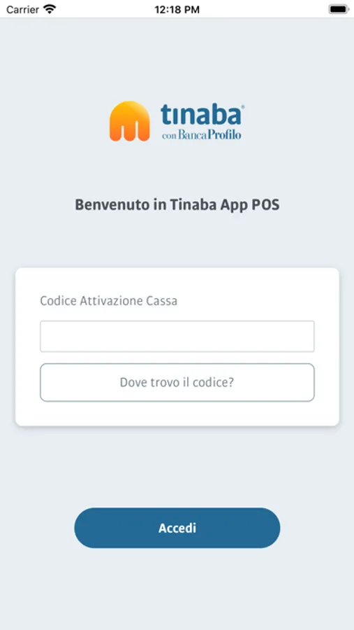 Crea una nuova cassa dalla tua App Tinaba o dalla tua dashboard e inserisci nella App POS il codice associato alla cassa per iniziare a utilizzarla.